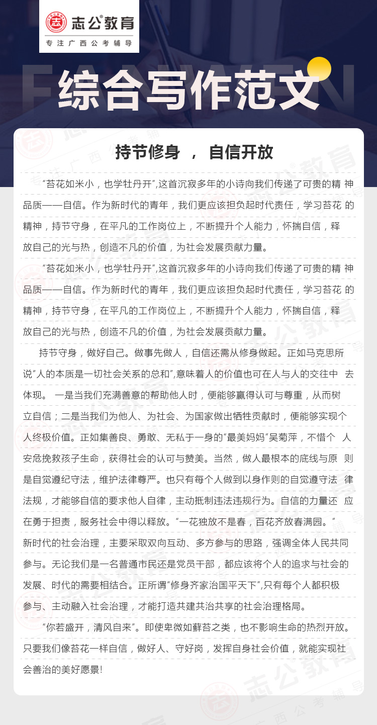 綜合寫作范文八:持節(jié)修身 , 自信開放