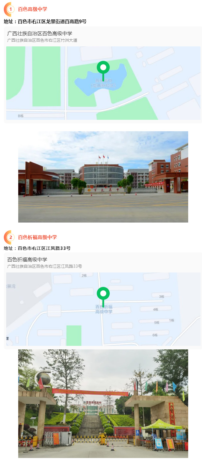 2.請?zhí)崆笆煜た键c(diǎn)地址,做好路線、住宿的安排。本次考試參考人數(shù)較多,考點(diǎn)分布分散,建議考生考前實(shí)地察看考點(diǎn),確認(rèn)考點(diǎn)入口位置,防止走錯(cuò)考點(diǎn)。請充分考慮考點(diǎn)周邊交通通行情況和停車場地容量,合理安排出行方式,預(yù)留充足時(shí)間,確保考試當(dāng)天按時(shí)到達(dá)。另外,考試期間百色市及各考點(diǎn)學(xué)校周邊的住宿比較緊張,請?zhí)崆邦A(yù)定。