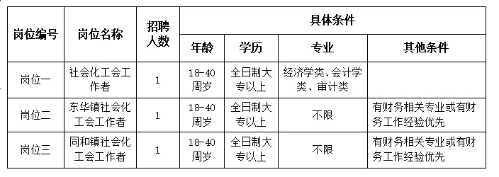 (五)具有全日制大專以上文化程度,年齡18-40周歲,性別不限;崗位一專業(yè)必須為經(jīng)濟學類、會計學類、審計類專業(yè);崗位二、崗位三專業(yè)不限,同等條件下,有財務(wù)相關(guān)專業(yè)或有財務(wù)工作經(jīng)驗優(yōu)先;
