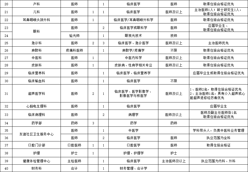 (二)臨床、醫(yī)技、護理等崗位人才(緊缺急需專業(yè):重癥醫(yī)學(xué)科、全科醫(yī)學(xué)科、康復(fù)醫(yī)學(xué)科、感染性疾病科、急診科、兒科、麻醉科、眼科、皮膚科、病理科、心腦電生理科等科室醫(yī)師)