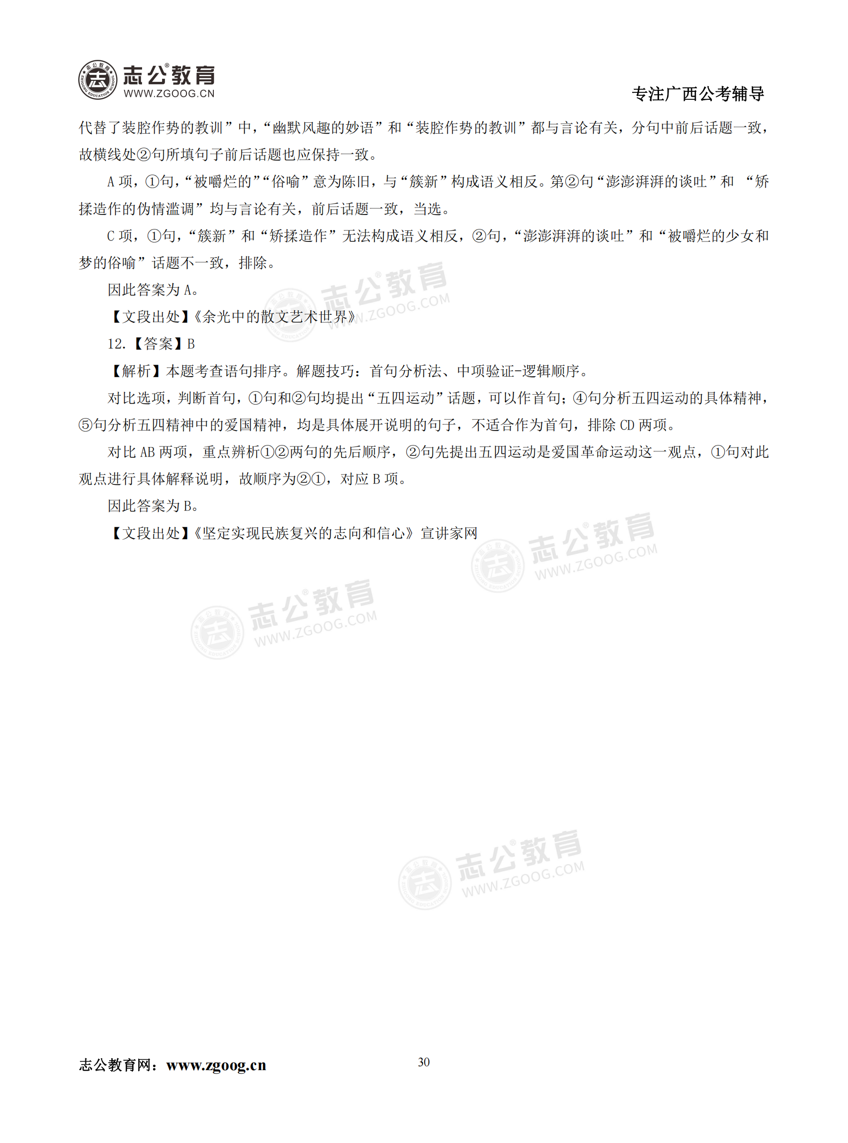 【公考模塊練習(xí)】言語理解題二(答案)