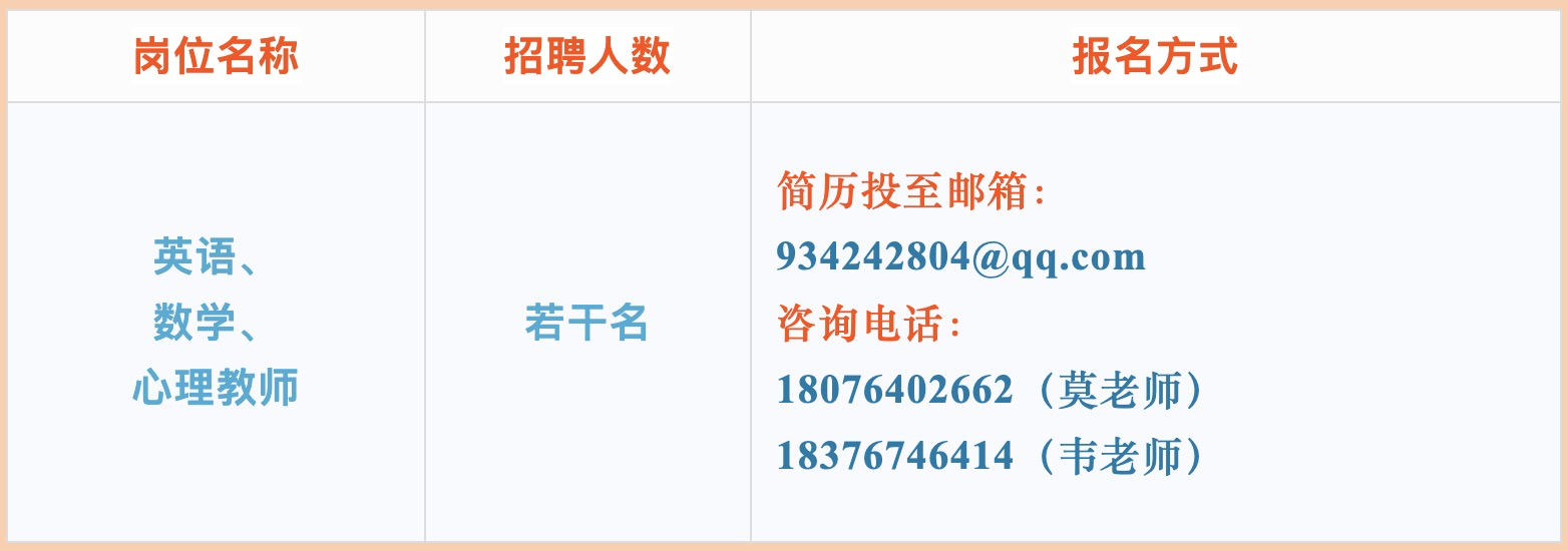 報(bào)名實(shí)行網(wǎng)絡(luò)形式,有意者請將簡歷投至學(xué)校郵箱934242804@qq.com。具體面試時間電話通知。
