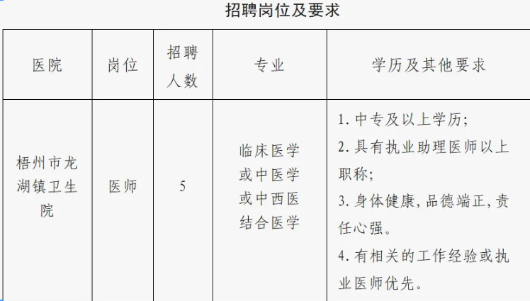 2025年梧州市龍湖鎮(zhèn)衛(wèi)生院招聘醫(yī)生5名