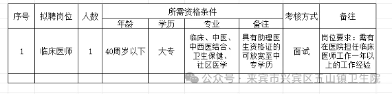 2.報名地點(diǎn):來賓市興賓區(qū)五山鎮(zhèn)衛(wèi)生院辦公室。