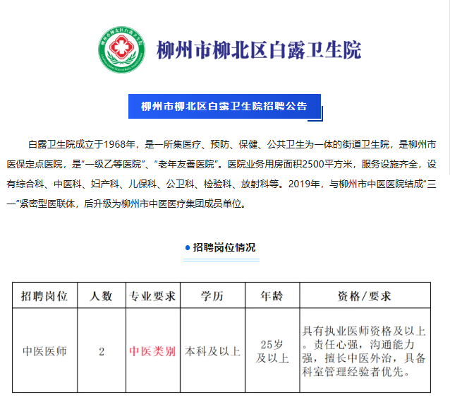 2025年柳州市柳北區(qū)白露衛(wèi)生院編外聘用衛(wèi)生專業(yè)技術(shù)人員2人