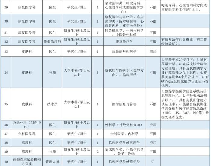 博士崗位:全年長期招聘(我院將根據(jù)報(bào)名情況分批次安排面試,具體以醫(yī)院通知為準(zhǔn)),崗位招滿即關(guān)閉報(bào)名通道。