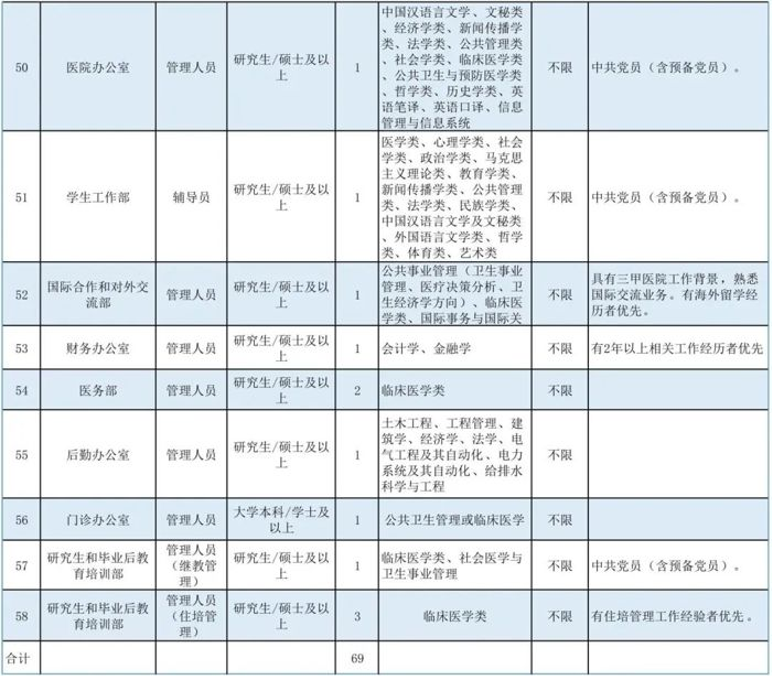根據(jù)我院人才及學(xué)科發(fā)展需要,現(xiàn)面向社會招聘醫(yī)生、技師、護(hù)理、行政管理及科研等崗位人才69名,具體如下: