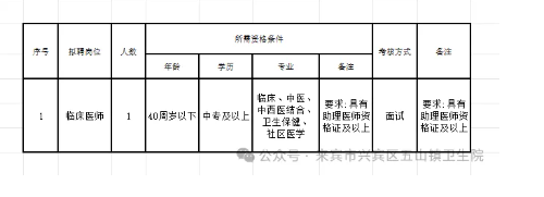 原文標(biāo)題:來(lái)賓市興賓區(qū)五山鎮(zhèn)衛(wèi)生院公開(kāi)招聘編制外聘用人員公告