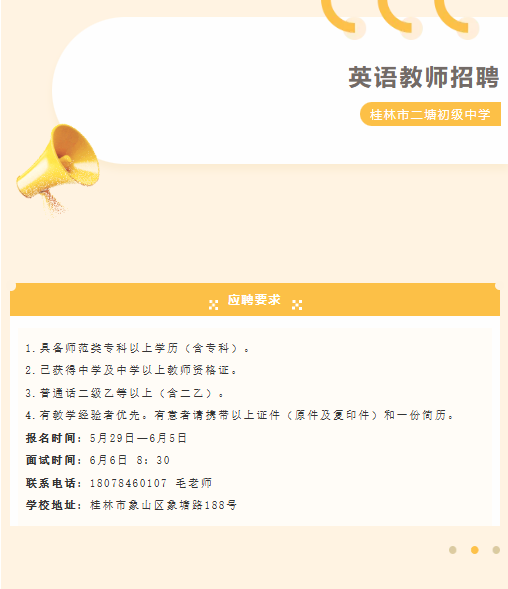 原文標題:桂林市二塘初級中學(xué)招聘英語老師一名