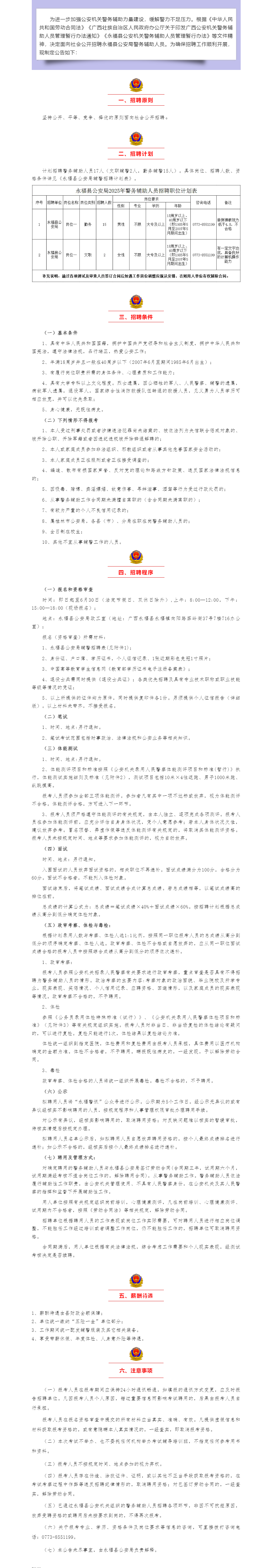 2025年桂林市永??h公安局公開(kāi)招聘警務(wù)輔助人員若干名