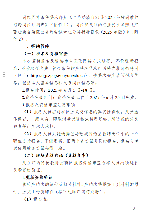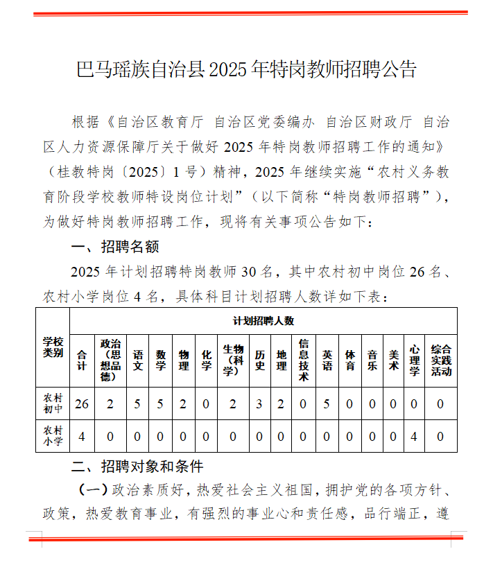 原文標(biāo)題:巴馬瑤族自治縣2025年特崗教師招聘公告