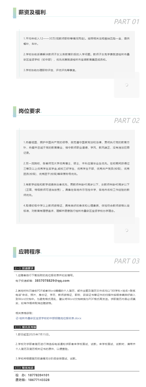 桂林市疊彩區(qū)寶賢學(xué)校招聘教師若干人