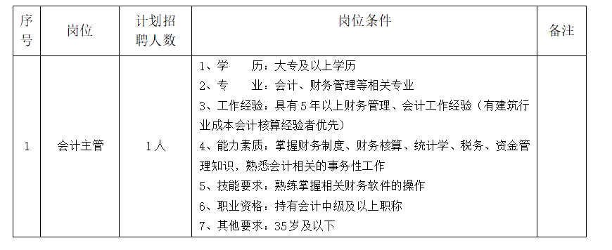 根據(jù)我公司業(yè)務發(fā)展需要,現(xiàn)面向社會公開招聘會計主管1名,相關事宜如下: