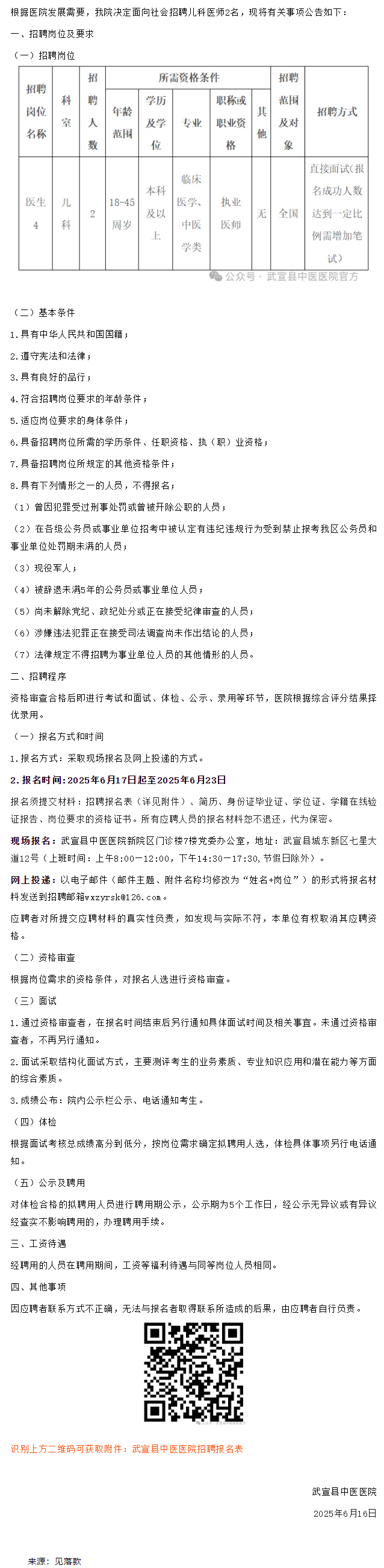 原文標(biāo)題:武宣縣中醫(yī)醫(yī)院2025年公開(kāi)招聘編外聘用人員公告(第一期)