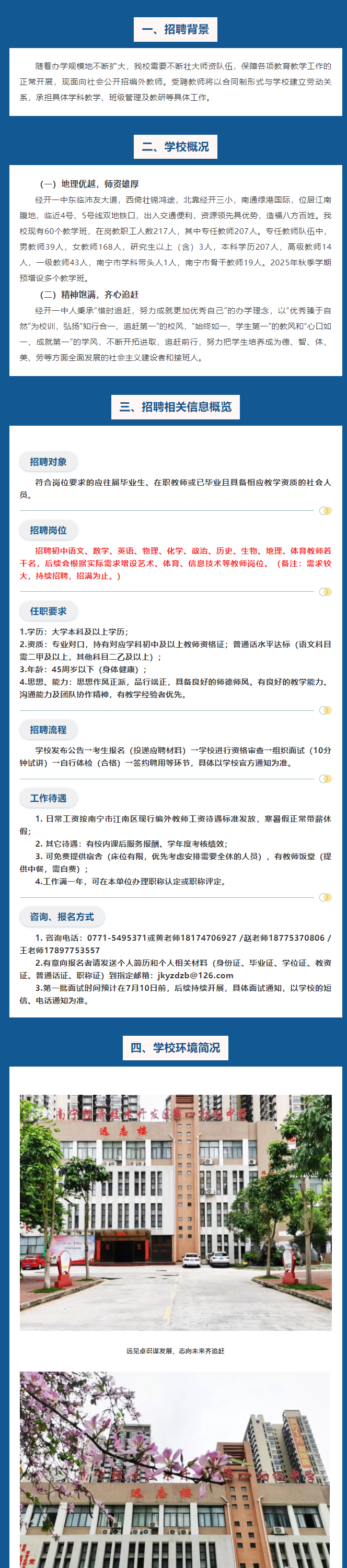 2025年南寧經濟技術開發(fā)區(qū)第一初級中學招聘編外教師若干人