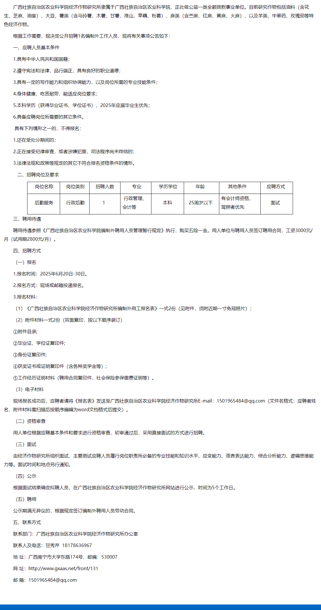 2025年廣西壯族自治區(qū)農業(yè)科學院經濟作物研究所招聘編制外工作人員1人