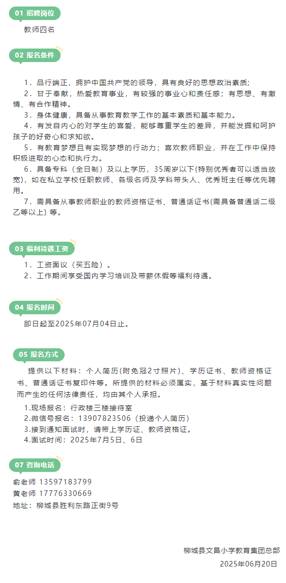 2025年柳城縣文昌小學(xué)教育集團(tuán)總部教師招聘公告