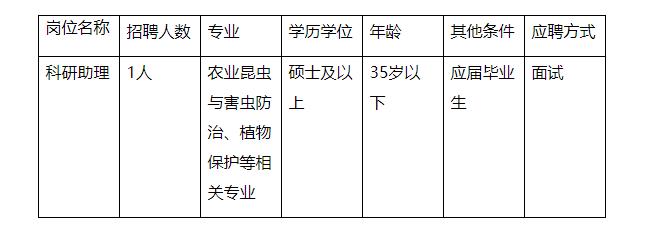 廣西農(nóng)業(yè)科學(xué)院植物保護(hù)研究所糧食作物害蟲(chóng)防控團(tuán)隊(duì)招聘編制外工作人員招聘1人