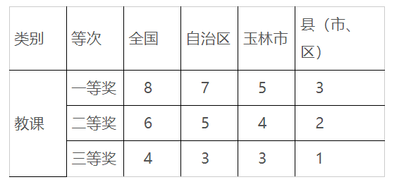 (5)現(xiàn)場教課比賽獲獎(jiǎng):參加教育行政部門或業(yè)務(wù)部門逐級(jí)選拔的縣以上的教課比賽獲得一、二、三等獎(jiǎng)勵(lì)給予計(jì)分。此項(xiàng)最高不超過10分。具體計(jì)分如下: