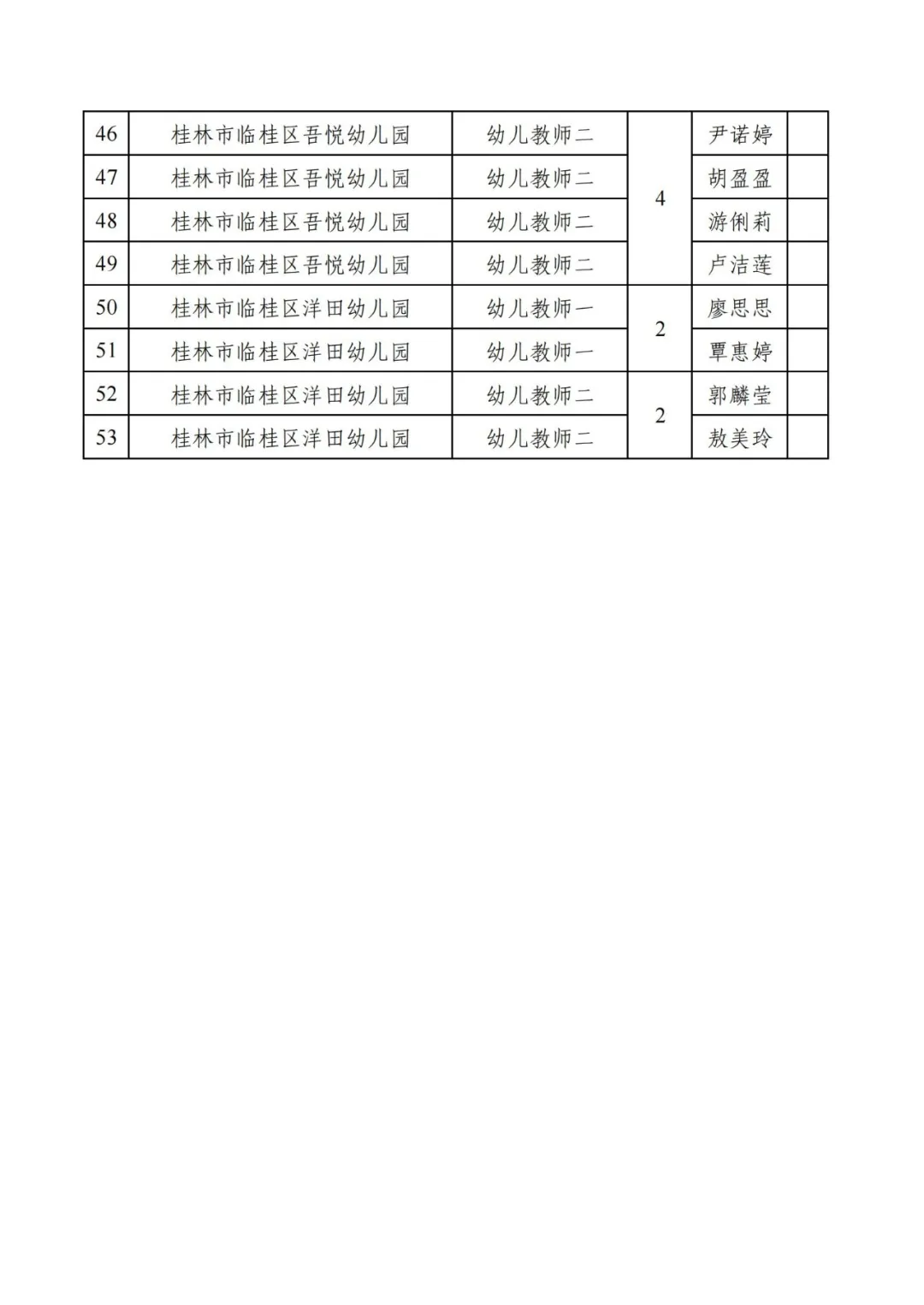 根據(jù)《桂林市2025年度公開招聘中小學(xué)教師公告》和《2025年桂林市臨桂區(qū)公開招聘中小學(xué)教師面試公告》規(guī)定,經(jīng)網(wǎng)上報名審核、筆試,現(xiàn)場資格復(fù)審、面試等程序,現(xiàn)將2025年桂林市臨桂區(qū)公開招聘中小學(xué)教師進入考核人員名單予以公示,公示時間為2025年7月21日至25日。公示期間如有異議,請以書面形式并署真實姓名和聯(lián)系方式于7月25日前將反映材料送達臨桂區(qū)委教育工委辦公室或臨桂區(qū)教育局人事股。如實反映有關(guān)問題受法律保護。