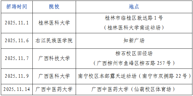 三、廣西各醫(yī)學(xué)院校雙選會(huì)舉辦時(shí)間、地點(diǎn)