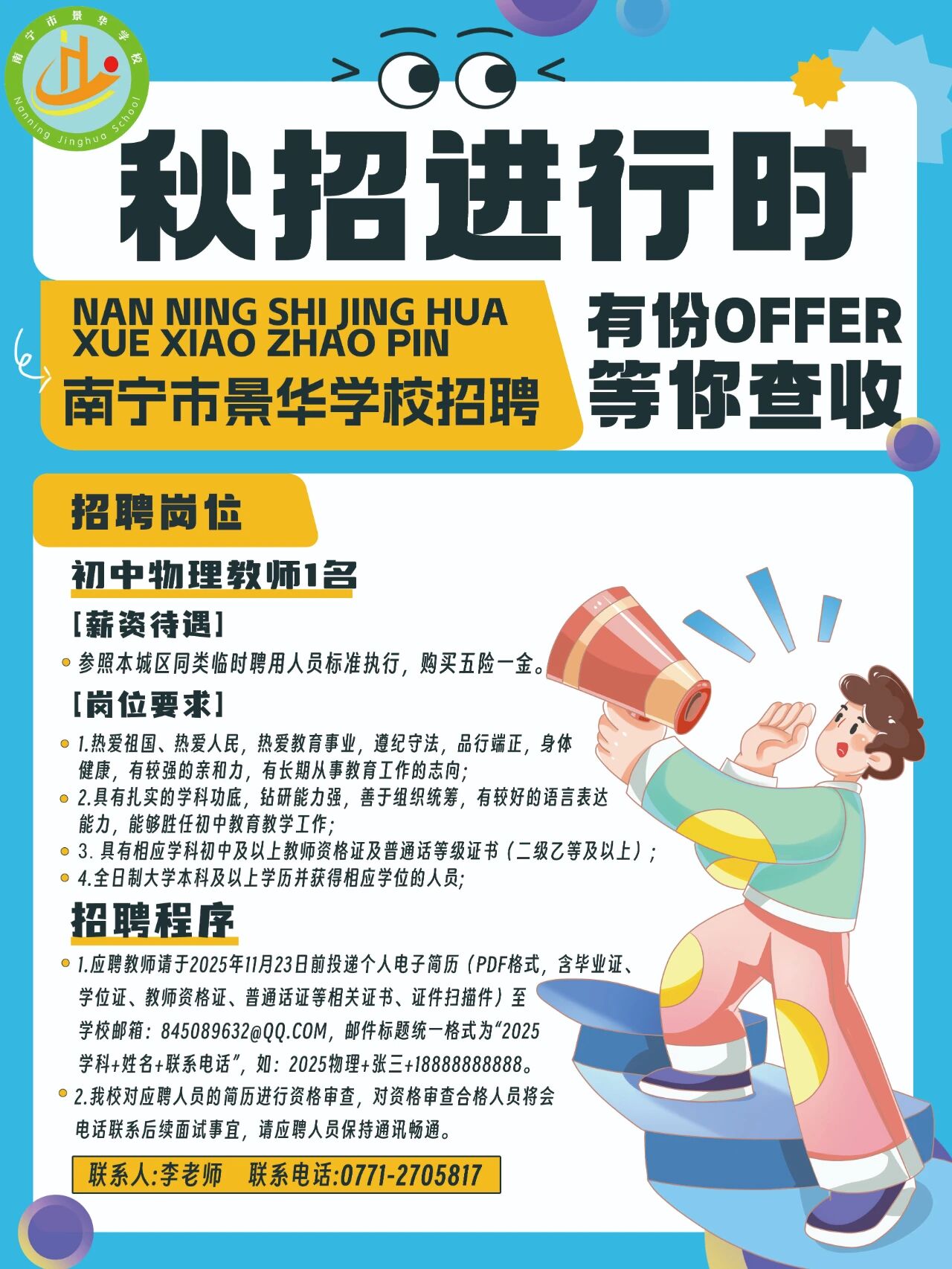 2025年南寧市景華學(xué)校招聘初中物理教師1名