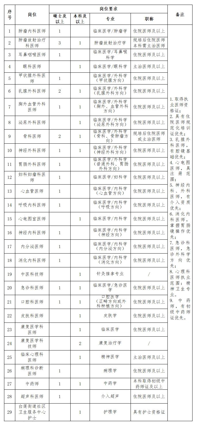 1.依據(jù)國家和學(xué)校相關(guān)規(guī)定享受相應(yīng)的待遇和工作條件,符合醫(yī)院人才引進(jìn)政策的享受相應(yīng)等次(博士、學(xué)科帶頭人、業(yè)務(wù)骨干、碩士研究生、急需崗位本科畢業(yè)生)的待遇,含安家費、科研啟動費、租房補(bǔ)貼等,具體情況以人事科解釋為準(zhǔn)。