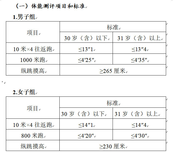 測評結(jié)果分為合格和不合格。一般體能測評三項成績均達標(biāo)的方為合格,其中具有研究生及以上學(xué)歷報考人員,體能測評三個項目中有任兩項達標(biāo)的,即視為合格。