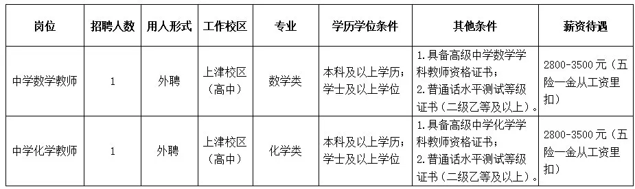根據(jù)學(xué)校工作需要,南寧市第十中學(xué)上津校區(qū)(高中部)面向社會(huì)招聘教職工,具體崗位如下: