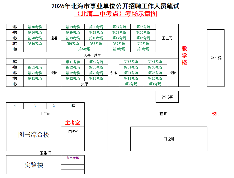 (一)3月28日進(jìn)行綜合管理類(A類)考試,北海市共設(shè)一個(gè)考點(diǎn),考點(diǎn)考場(chǎng)布置為: