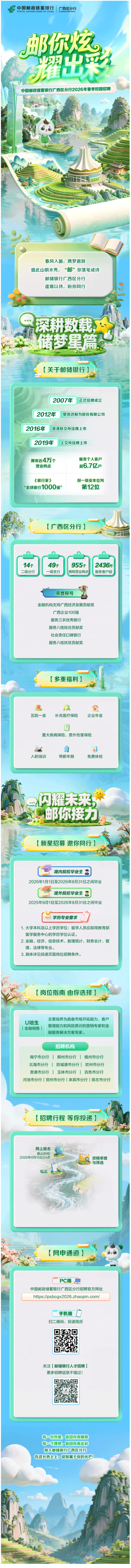 中國郵政儲蓄銀行廣西區(qū)分行2026年春季校園招聘